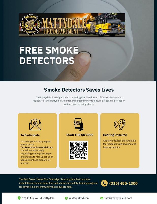 We are excited to bring a new program to our community! No home should go unprotected from fire. If you live in Mattydale or Pitcher Hill and are in need of smoke detectors, we will come visit and install them for you! Follow directions on the flyer to participate!